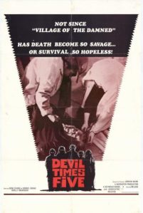 When setting out to watch this ’70s obscurity, I had no idea the sort of sleazefest I’d be enjoying. In one especially enlightening sequence, a bored and oversexed housewife emulates Of Mice and Men with the mentally challenged handyman, after which she is confronted by her daughter-in-law – the current paramour of an ex-conquest – and a breasts-exposing catfight ensues. The daughter-in-law subsequently goes to bed with the disputed boyfriend. Meanwhile, the other adult female on the premises is drinking heavily and badgering her shlump of a husband, played by Sorrell Booke. As this is happening, five deranged children who have survived a bus accident break into the secluded lodge-style home in which all of the above are weekending, and beat to death their pursuant erstwhile handler – in slow motion. This movie becomes quite unsettling as it unspools … but its creepiest component lies behind the scenes. Mid-seventies flash in the pan Leif Garrett plays one of the murderous kids (“Charlie”), as does his younger sister Dawn Lyn (“Moe”), and their mother (Carolyn Stellar) plays the sexpot, “Lovely,” who eventually is killed off, topless in the bath, by Moe. Hollywood family values – now that’s chilling.
