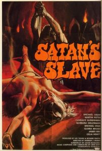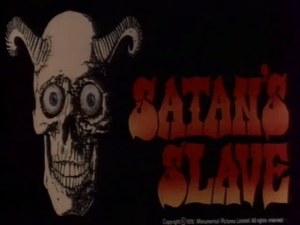 Oh, Satan’s Slave, where have you been all my life? Sure, I’ve recently watched a movie with that very title, as well as one dubbed “Satan’s Slaves,” but as I accidentally stumbled into the oft-overlooked category of British exploitation horror, I finally found the REAL DEAL. All right, actually, for about the first hour this burlesque is akin to a rambling and mundane country-house tragicomedy of (ill) manners, spruced up here and there with wildly graphic, explicit inserts of sex and murder, and murderous sex, and sexual murder – allegedly for profitable rerelease in the Asian market, which I am unsure ever actually occurred. (Similary, Crown Int’l Pix ostensibly was responsible for this film’s domestic theatrical run, with the secondary title, though the version I watched retained the original handle.) Such chicanery lends itself to rather glaring differences in film stock, exposure and so forth in some of the edits. At one point, too, the action appears to advance ahead of our understanding for a few moments, as though we’ve missed something. But hoo boy, once Frances the secretary reveals the sinister plot, it gets real good real fast. The SHOCKING twists that comprise the ending follow one another in rapid succession and all the tawdry, lusty mania comes to fruition as the diabolical cult approaches its goal. Highly recommended!