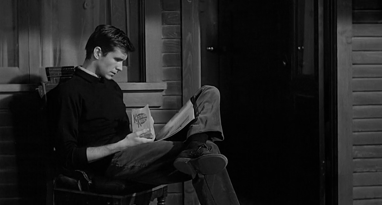I’m sure it’s been noted before, but the attention to detail in this movie astounded me, such as the scene wherein Arbogast is looking for clues to Marion’s disappearance in the Bates Motel’s office parlor – where Norman is displaying his stuffed birds – and the bookshelf behind him holds a full set of books entitled The Art of Taxidermy. So it’s a bit surprising, I guess, that certain other important factors seem so transparent, or even dishonest. Of course, that’s nitpicking, and anyone who doesn’t think this is a high-quality cinematic achievement … probably doesn’t care for noir films or suspense, or pulp fiction. Hitchcock himself must have thought he had a goldmine here, however, as he went ahead and made it despite Paramount’s objections and refusal to budget it appropriately. That worked out all right.
