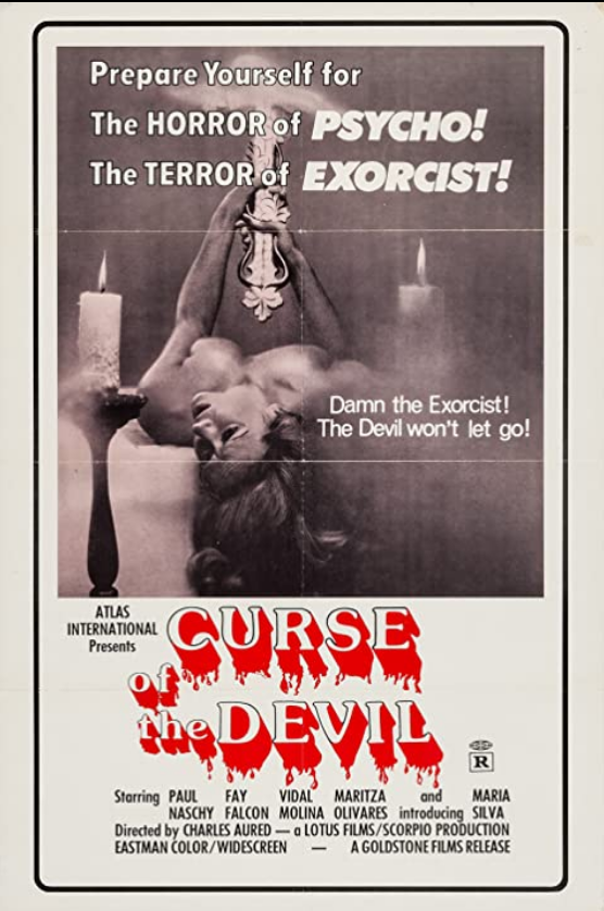 See, it’s called “Curse of the Devil” – this release is, anyway – and this is the IMDb description: “A man whose ancestors executed a witch is turned into a werewolf by modern-day descendants of the executed witch.”