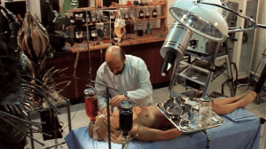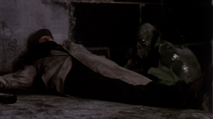 So, “Dracula” as the world knows him doesn’t really appear in this movie – but an “Igor Dracula” does, along with one last descendant, a modern family man named “Michael Drake.” The story, such as it is, is a cockamamie concoction about a canine that I. Dracula long ago enlisted for some reason or another, along with its former owner – this picture’s Renfield, essentially – a quasi-vampire that can wander around in the daylight to do his bidding. Here, having been revived and in need of a master, these servants want to deliver M. Drake to his legacy. (Did you know that if you remove the stake from the heart of a vampire or near-vampire in its coffin, it comes back to, uh, “life”? I didn’t.) I cannot possibly convince you how preposterous this film is. I would like to point out, however, that relying on dogs to be your lead actors is not the world’s greatest idea.