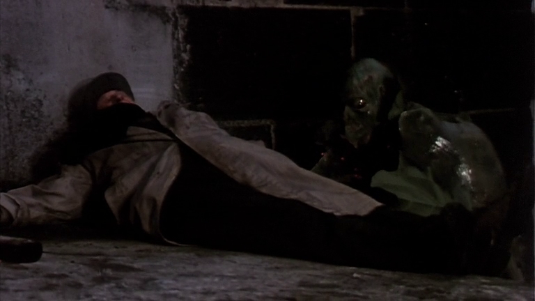 I did mention that this pic relies on dogs to carry a lot of the action, right? Zoltan himself dismantles the roof of a cabin at one point while his comrades compromise the walls. The overdubbed dog noises are also pretty special – barking, howling, growling, you name it. Nothing, however, tops the experience of repeated shots of loyal servant “Smit” staring idiotically into the camera while a voiceover intones “ZOLTAN.”