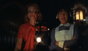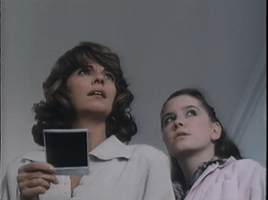 Felicitously enough, this wannabe fright flick was directed by the same guy who lensed Satan’s Slave and Prey, among other questionable ventures – such as Terror, which I didn’t even remember viewing. (I’ll say this for Mr. Warren’s output: it obviously gets MY attention.) Warren claims that this picture was doomed by its producers, who were cheap and didn’t know anything about horror, so he more or less “gave up.“ But while there are hints of something potentially interesting here – and something much more compelling should have been possible – this production is overly reliant on ridiculous reverse motion “effects” and insanely repetitive shots of barely seen figures, so place the blame where you may. The most promising theme, involving mirrors as some sort of temporal capture device, isn’t properly developed, severely undermining any attempt to make the goings-on coherent. Redundant at best, and imitative and inane at its worst.