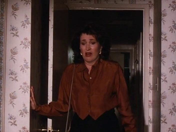 Shown a police photo, the long-lost “Annie” observes that “Albert” has “hardly changed at all.” As has already been established, the character is being played by a different actor, with little resemblance to the first. Albert has allegedly been “analyzed, lobotomized, and institutionalized for the past 21 years,” which I guess is to account for his one-note depiction throughout … but whether that much thought went into any of this seems debatable. Hallucinations and re-creations of key scenes from the first go-round don’t abet the cause.