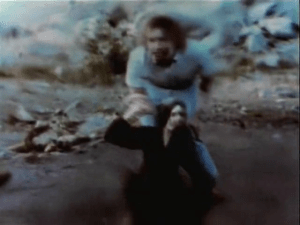 There’s a lengthy (and frankly tangential) rape in this film which, although not particularly explicit, doesn’t differ much in feeling from an earlier portrayal of consensual sex. The actress was a noted performer from Japanese porn – originally slated for the lead role. The “Evil Dead” part of the moniker basically doesn’t apply, though some Raimi camerawork is evident. One kill in particular reminded me of, I think, “Blood Tracks.“ (If not Saw.)