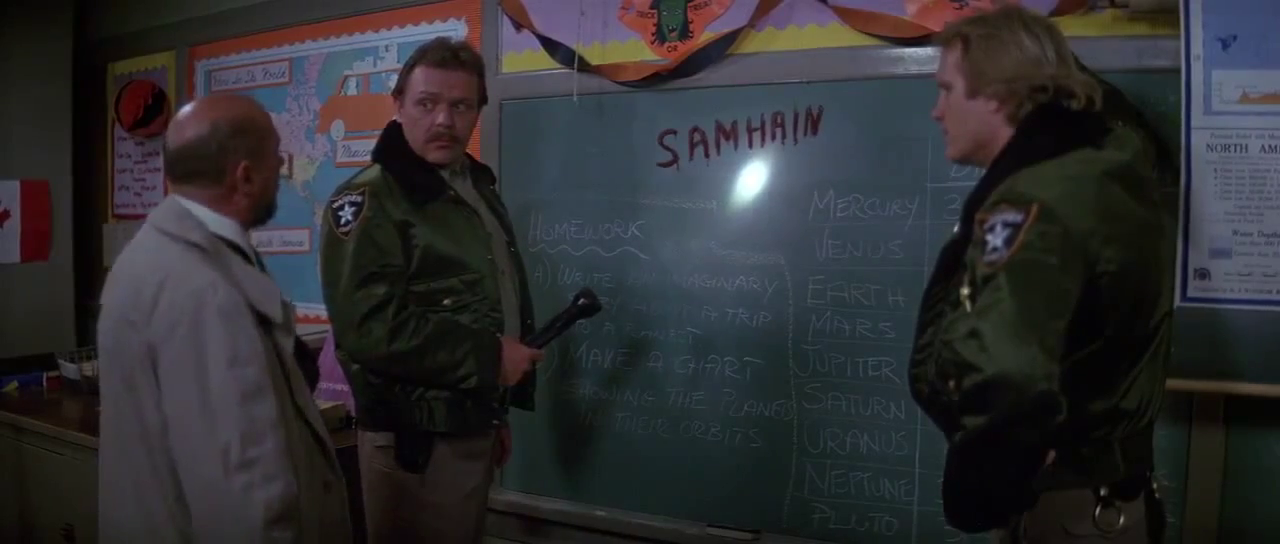One of those movies where I recognize certain scenes but don’t remember much else besides, this once-and-future sequel – for now, it’s been written out of the canon – is mainly notable for introducing Michael M. to the cinematic world of the bored spree killer who begins to get creative in his methods of destruction, along with its clumsy attempt to hang some sort of meaningful framework onto a story better left unexplained. And no, I don’t mean the “Laurie’s his sister” angle, I mean that “Samhain” silliness, a direction which of course reached its apogee in “Season of the Witch.” It’s good enough, I guess – but strictly as a sequel, as its formulaic nature probably wouldn’t have sustained it as a standalone. Not that thousands of its ilk haven’t been churned out anyway, of course. I will give it some credit for taking place immediately following the events of the first feature, as a continuation of the same story; that’s pretty crafty.