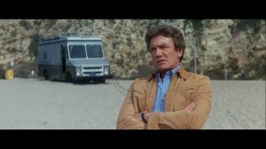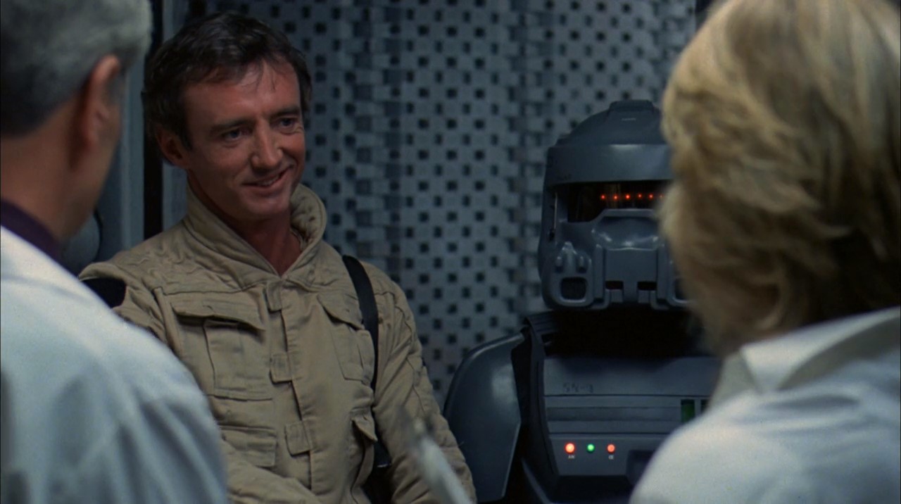 Maybe halfway through, it occurred to me that “Dr. Cal Timbergen” seemed familiar to me for a reason, that being he’s “J. Frank Parnell” from Repo Man (aka Fox Harris). The scanty disco jumpsuits worn by Dunlap and June Chadwick (as “Dr. Barbara Glaser”) are perhaps even more ridiculously sexist than their utterly gratuitous dual nude scene. During the opening moments, as military officer “Mike Colby” is being brought out of stasis or whatever, he inexplicably experiences visions foreshadowing the adventures to come.