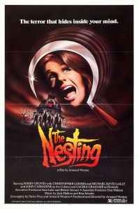 For the most part, this is a straightforward old-haunted-house yarn, but it has a couple peculiarities that are gonna leave you wondering. The basic story is, well, basic: successful novelist rents a country home for rest, relaxation and writing, but wouldn’t ya know, something’s amiss. For one thing, she keeps having these weird dreams. For another, she’s agoraphobic, which isn’t the best trait when your residence starts frightening you. Then there’s the small matter that the house itself was depicted on the cover of one of her previous novels. Throw in a threatening drunken handyman, various oddball locals, and intrusive hallucinations, and you’ve got your hands full. Pretty good overall, but oh, those few production quirks …