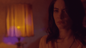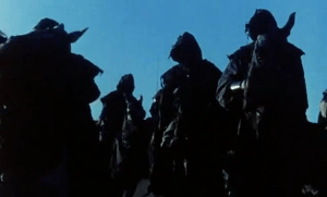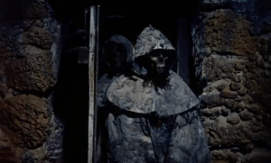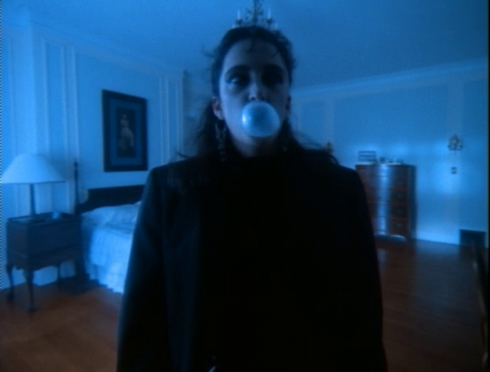 This film begins with one of my least favorite types of openings, in this case a solitary motorcyclist riding endlessly through scenic vistas while the credits roll on endlessly. The decor of the evil queens’ little country hideaway is utterly fabulous, especially the humongous portraits of the three of them that dominate the walls. David, that’s a clue, bro.