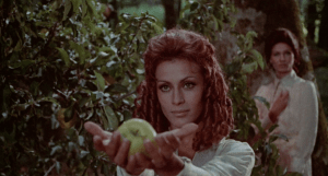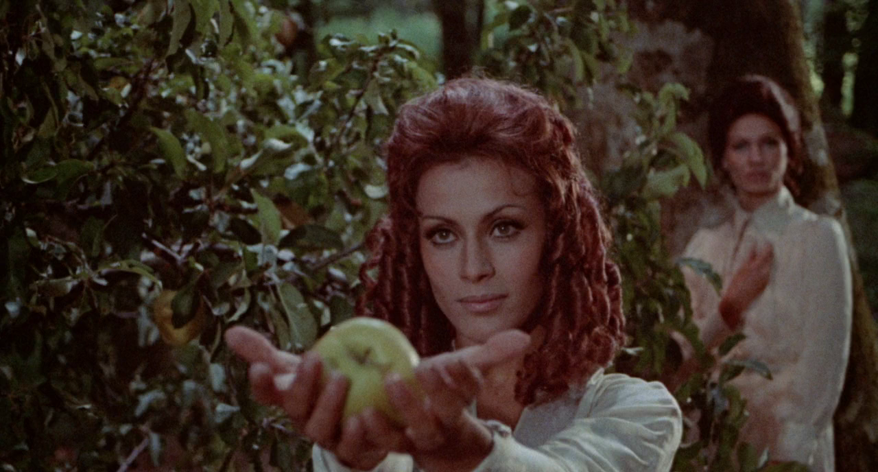 Oh, those damn hippies. Redolent of a bygone era in many different ways, this possibly satirical and occasionally symbolic cautionary tale rarely overcomes its internal obsession with seductive mod accoutrements. Some sorta ill-defined supernatural mystickal powers are also haphazardly invoked from time to time, and some of the soundtrack is given over to the folksy croonings and strummings of Ray Lovelock, who plays David, our carefree guide to pastoral Italian livin’. And absolutely nothing happens, for the most part, although David becomes a plaything for each of three witches in turn, and also eats like a complete pig whenever they supply him with a sumptuous repast. (Seriously, this guy chows down like an ill-mannered slob; this revolting lack of refinement is probably intended to illumine how his devotion to What Feels Good, Man, is leading him down the primrose path.) P.S. Evil wins.